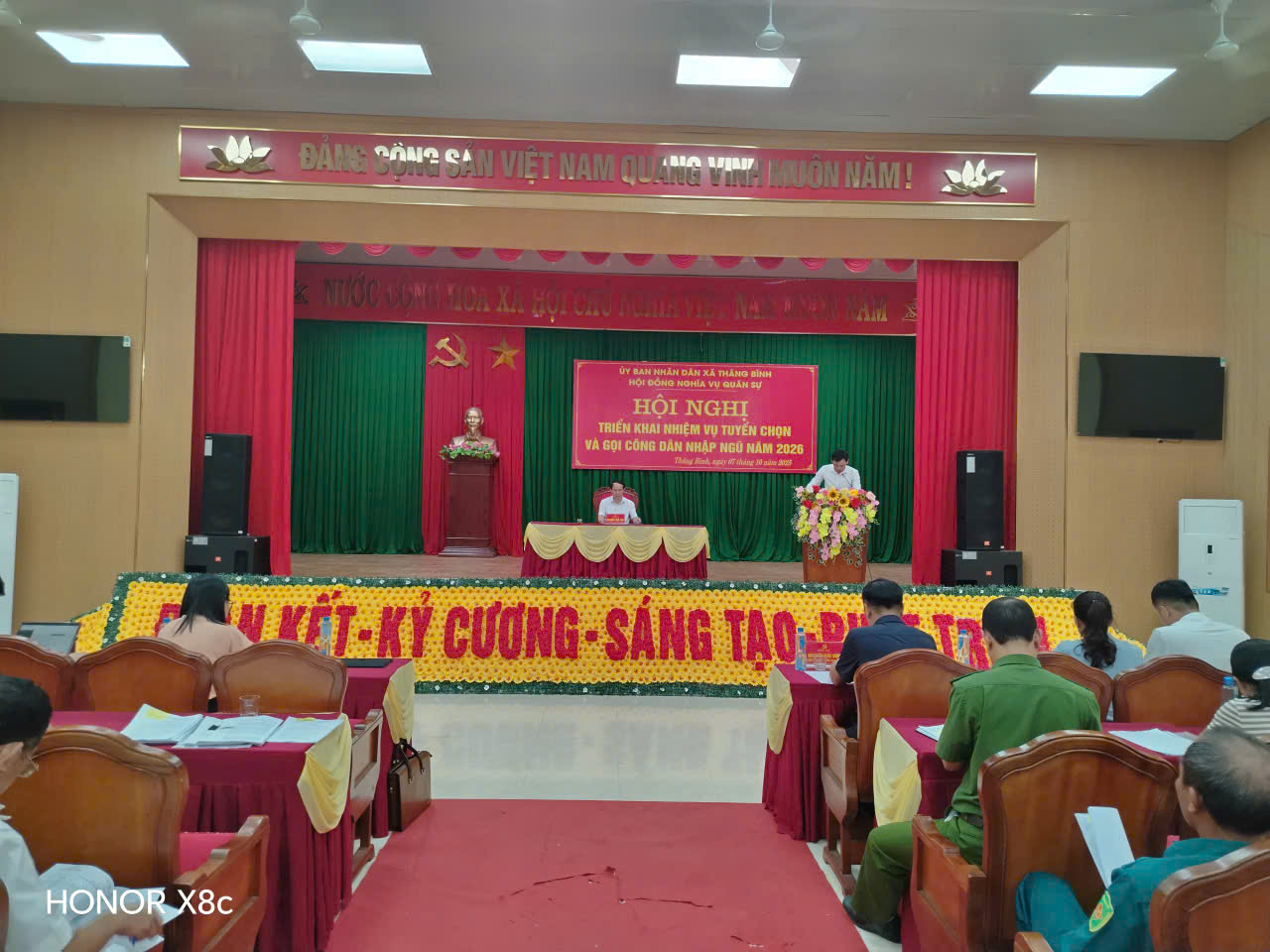 Tham dự có đồng chí Nguyễn Hải Đức – Bí thư Đảng ủy, Chủ tịch HĐND xã; các đồng chí Phó Chủ tịch UBND xã; đại diện các ban, ngành, đoàn thể, Công an, Ban Chỉ huy Quân sự xã; Bí thư chi bộ, Trưởng thôn; cùng toàn thể thành viên Hội đồng nghĩa vụ quân sự xã.